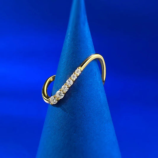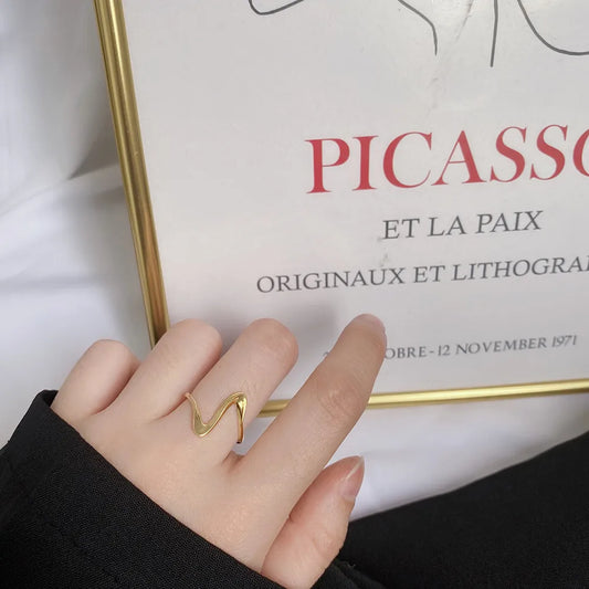 Anillo Ondulado Dorado Plata Esterlina S925