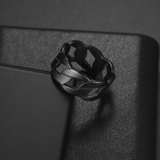 Anillo Negro Cadena Acero Inoxidable