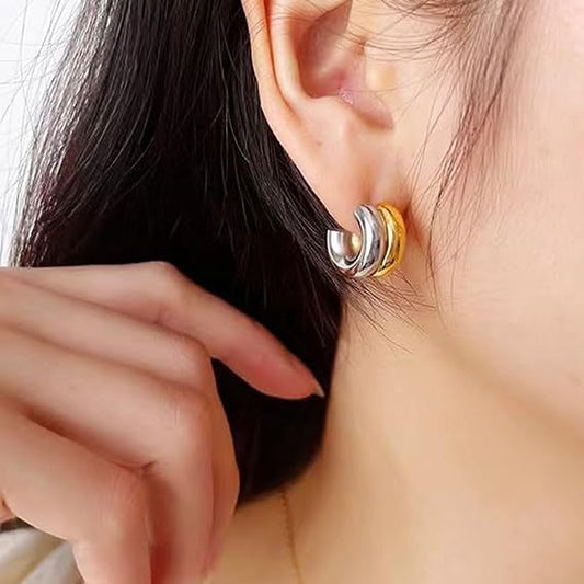 Aretes Doble Bicolor Acero Inoxidable