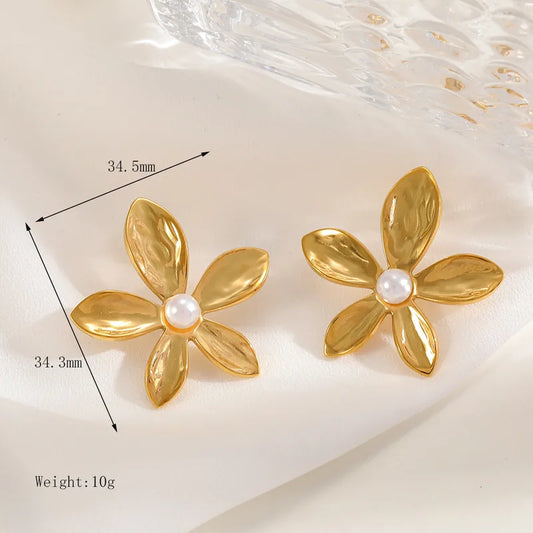 Aretes Flor Perla Acero Inoxidable