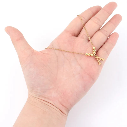 Collar Letra Cadena Bolitas Acero Inoxidable