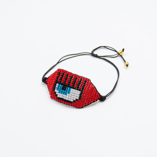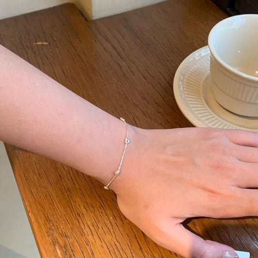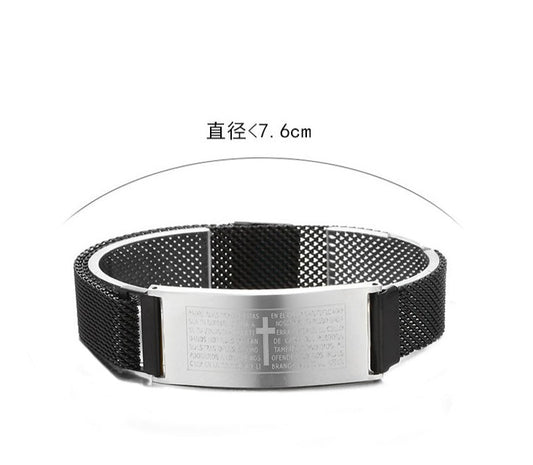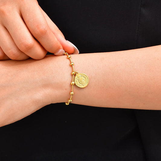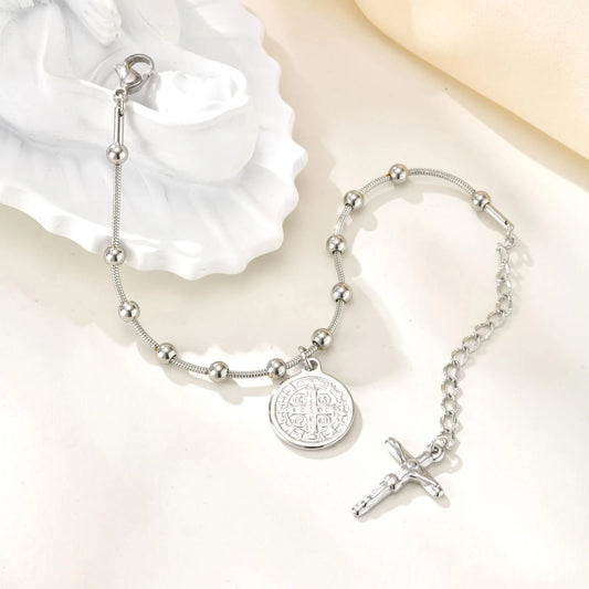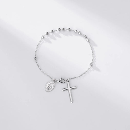 Pulsera Cruz Bolitas Bicolor Acero Inoxidable