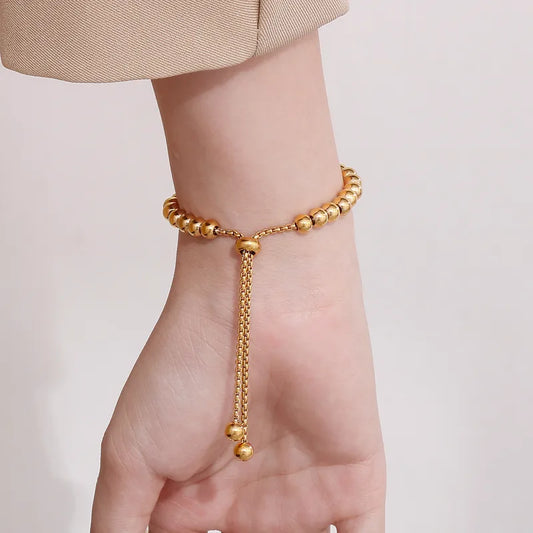 Pulsera Dorada Bolitas Corazón Acero Inoxidable