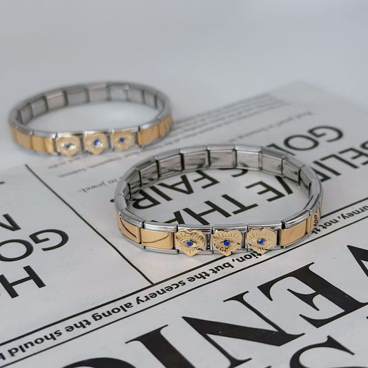 Pulsera Italiana Corazón Ojo Acero Inoxidable