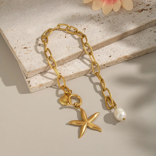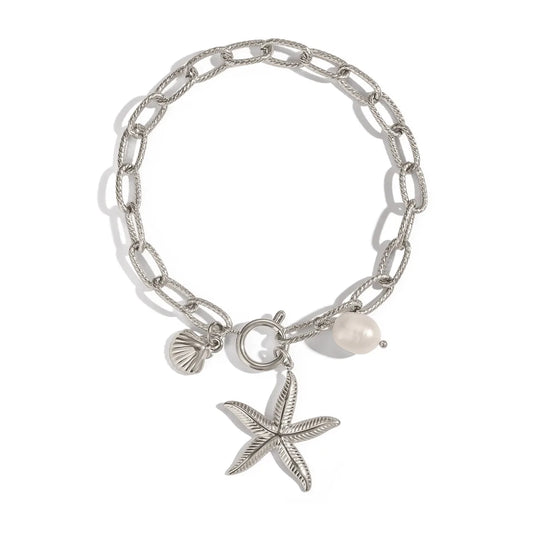 Pulsera Perla Estrella De Mar Acero Inoxidable
