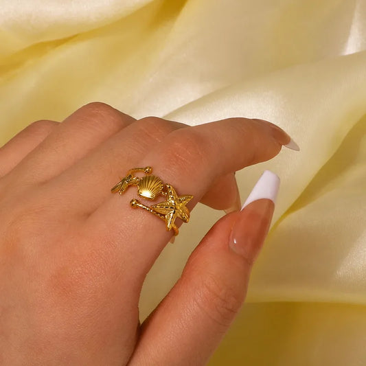 Anillo Estrella Mar Concha Acero Inoxidable