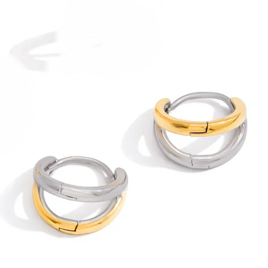 Aretes Doble Bicolor Acero Inoxidable