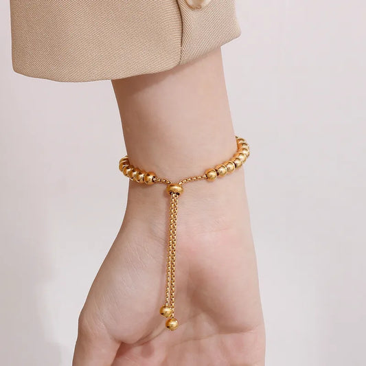 Pulsera Cruz Bolitas Bicolor Acero Inoxidable