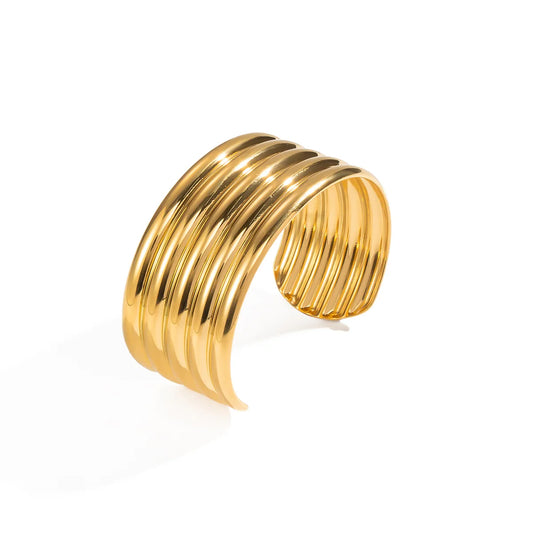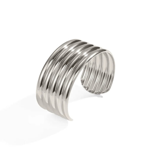 Pulsera Gruesa Líneas Acero Inoxidable