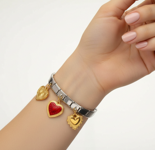 Pulsera Italiana Corazones Acero Inoxidable