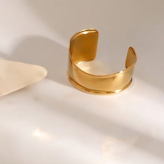 Pulsera Gruesa Ondas Dorada Acero Inoxidable