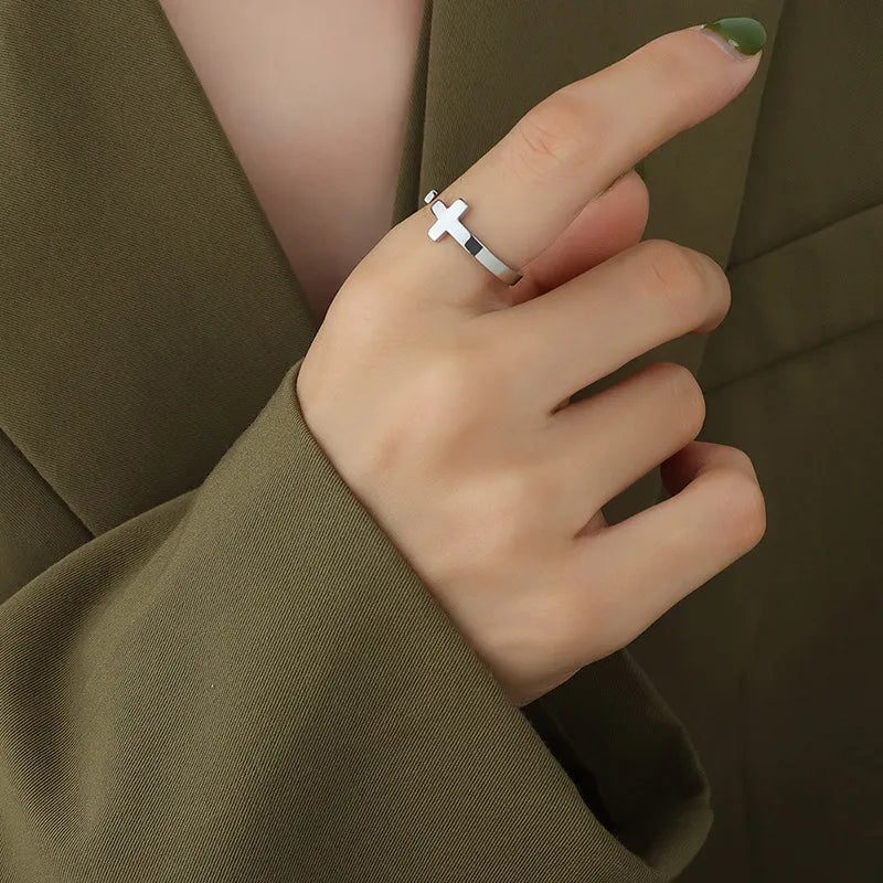 Anillo Cruz Plateado Acero Titanio