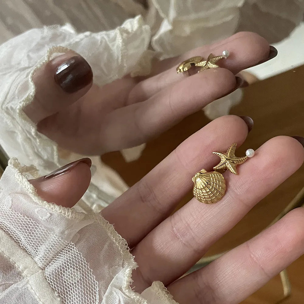 Aretes Estrella Concha Acero Inoxidable