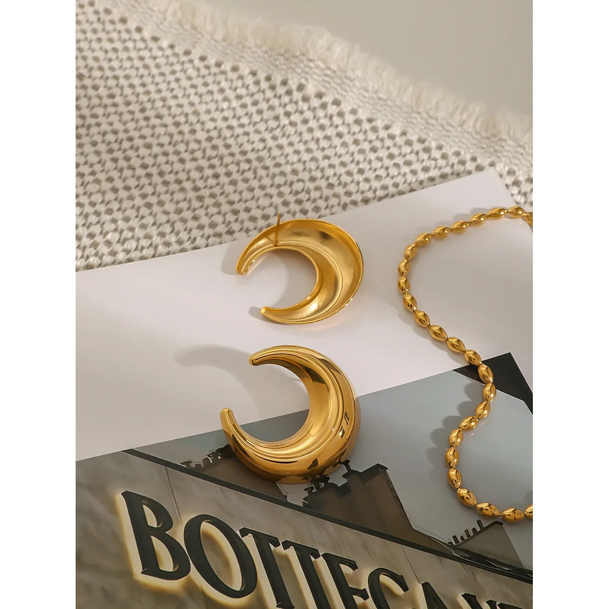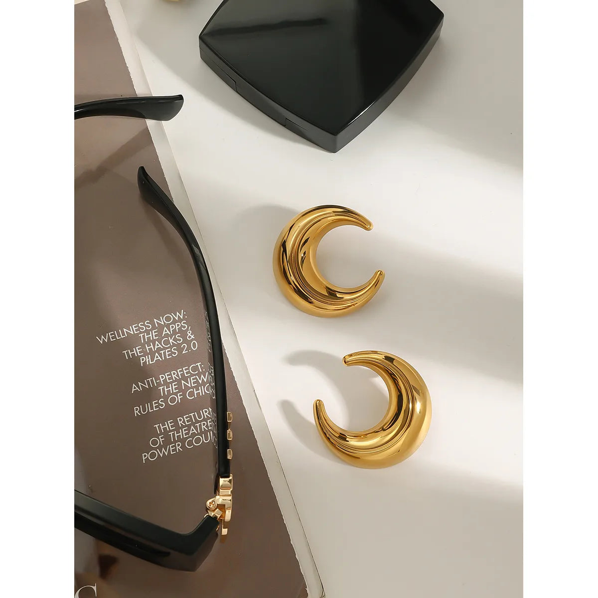 Aretes Luna Dorados Acero Inoxidable