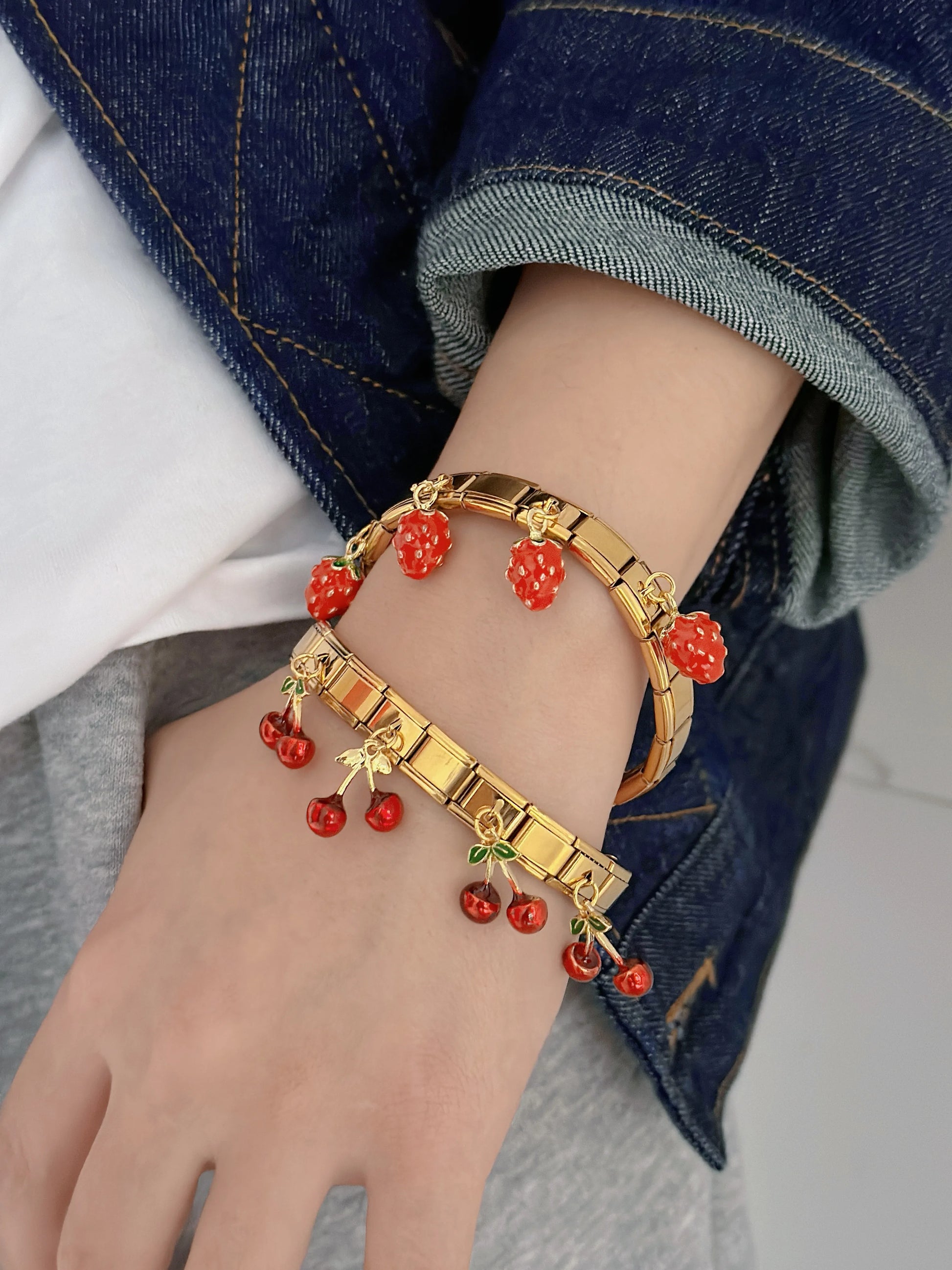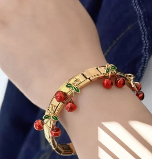 Pulsera Italiana Dorada Cerezas