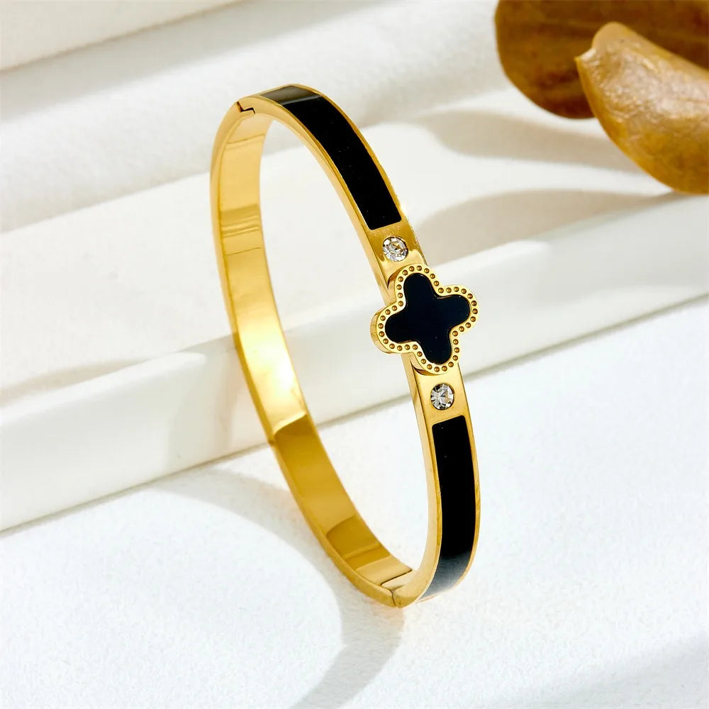 Pulsera Trébol Negro Acero Inoxidable
