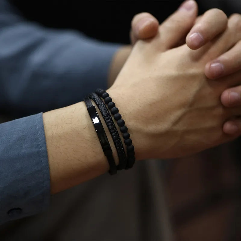 Pulsera Triple Trenza Negra