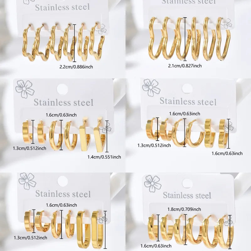 Set Arracadas Doradas Acero Inoxidable